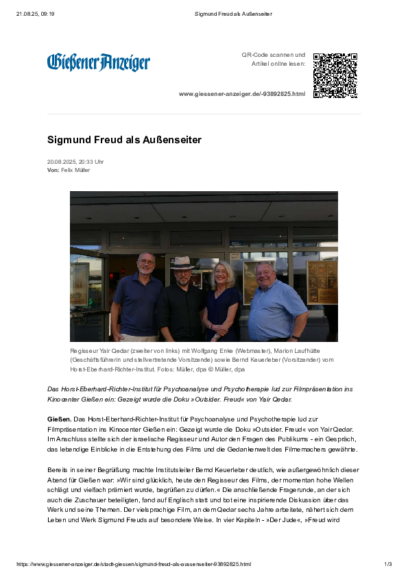 Presseartikel im Gießener Anzeiger vom 20.08.2025